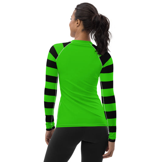 Witchy Green Stripe Women's Rash Guard