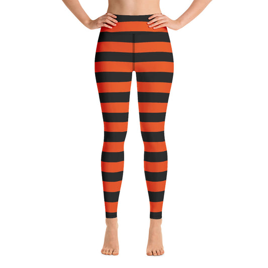 Witch's Orange and Black Stripe Yoga Leggings