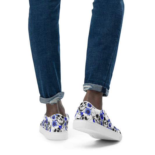 Skulls and Blue Blossoms Men’s Slip-on Canvas Shoes