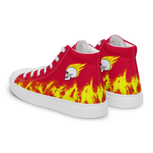 Fiery Skull Men’s High Top Canvas Shoes with Padded Collar