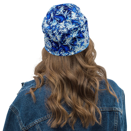 Spiral Snake Embroidered Distressed Denim Bucket Hat
