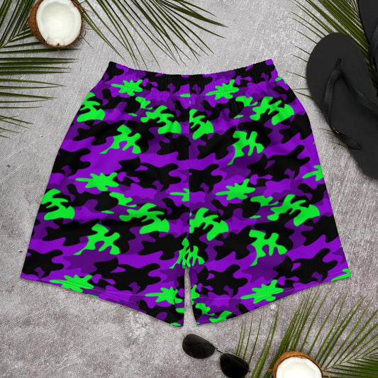 Lime and Purple Camo Athletic Men's Mid-Length Shorts