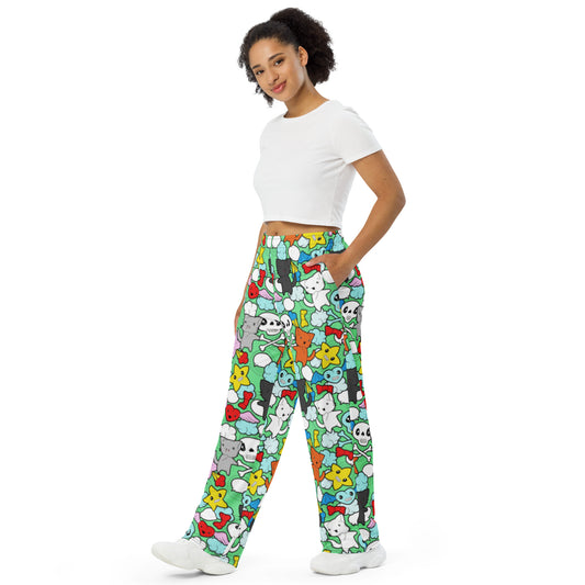 Kawaii Kitties and Skulls Unisex Wide-Leg Pants