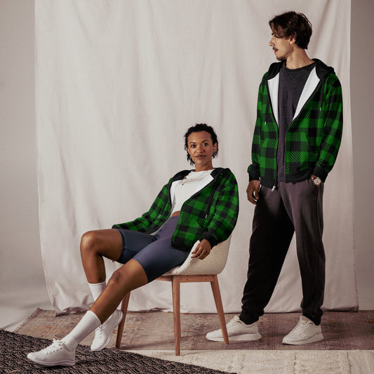 Green and Black Tartan Unisex Zip Hoodie