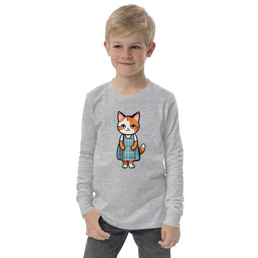 Cat in an Apron Dress Youth Long Sleeve Tee