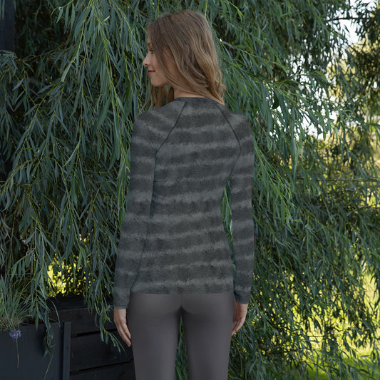 Grey Tabby Cat Fur Print Women's Rash Guard