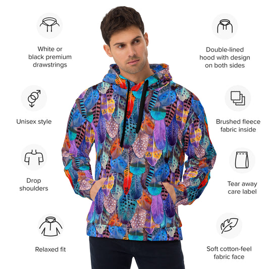Colorful Feathers Print Unisex Hoodie