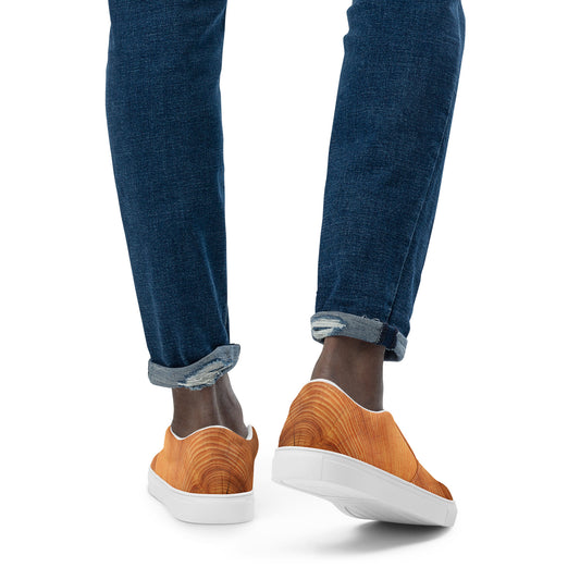 Cracked Wood Pattern Men’s Slip-on Canvas Shoes