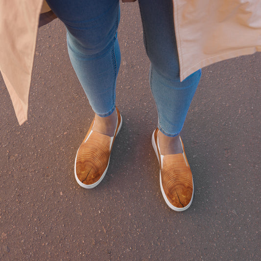 Cracked Wood Pattern Women’s Slip-on Canvas Shoes