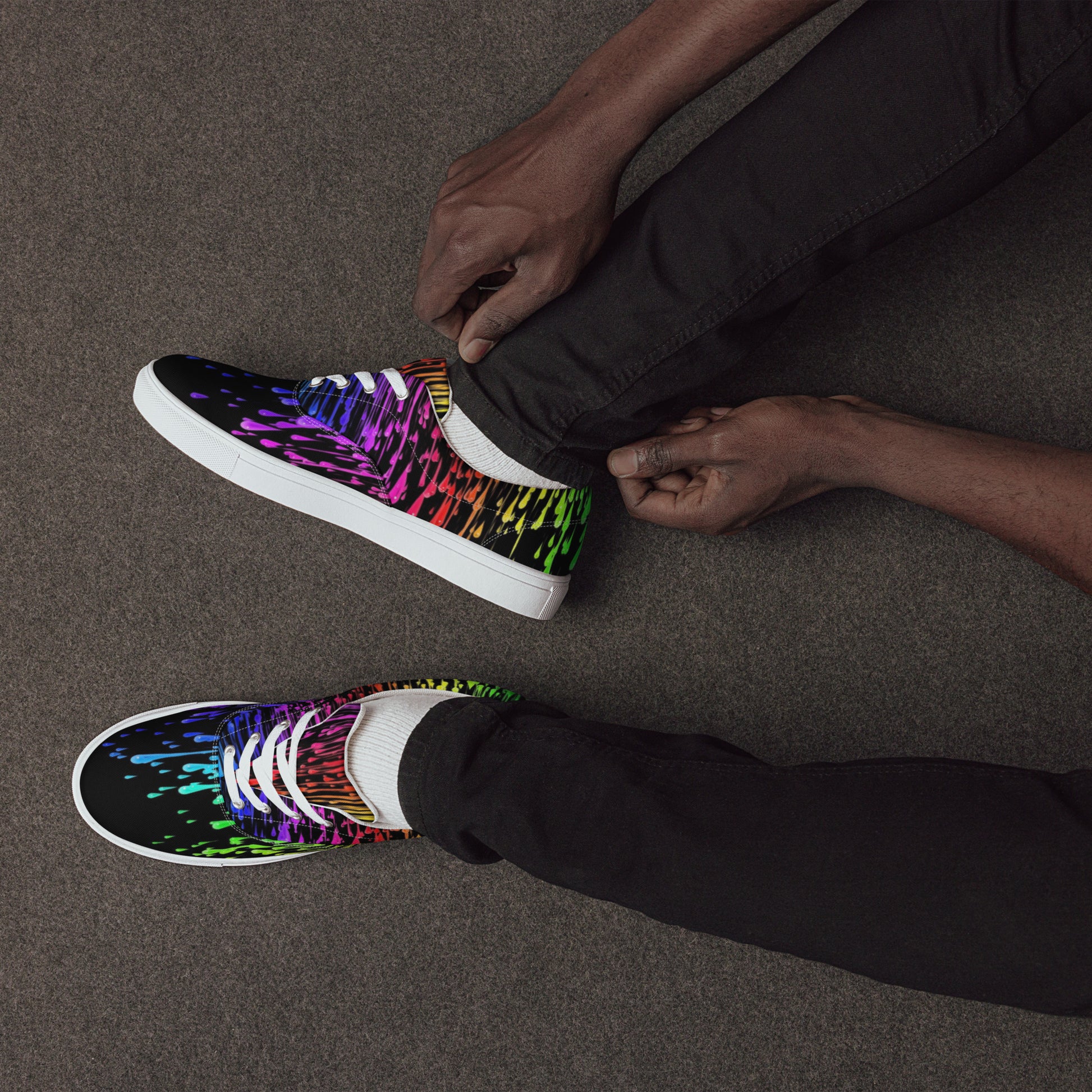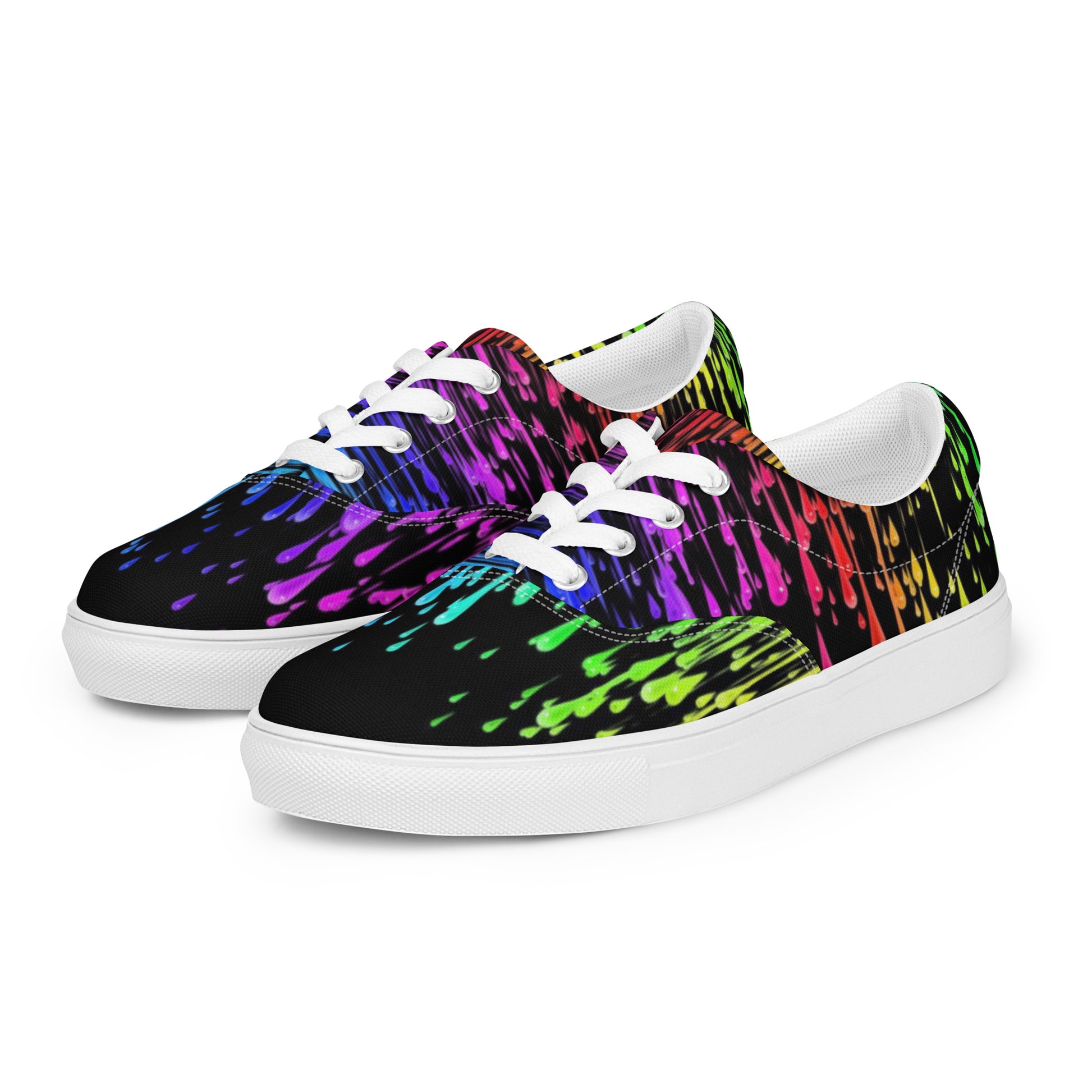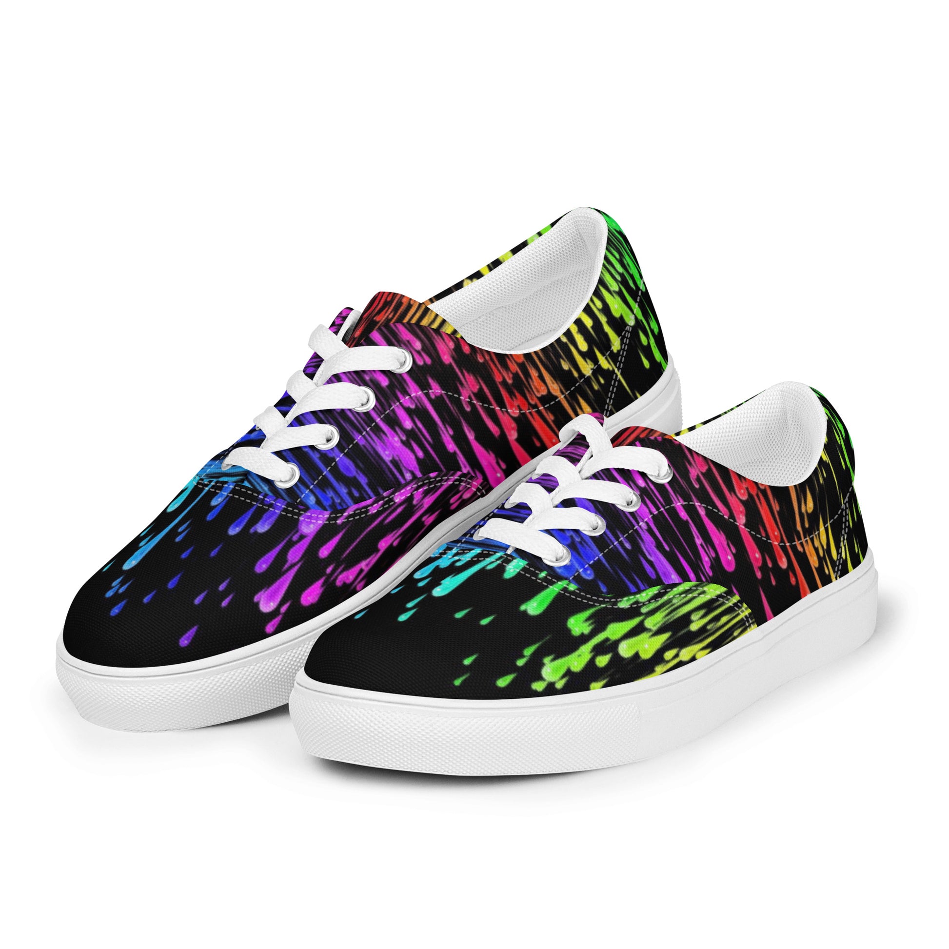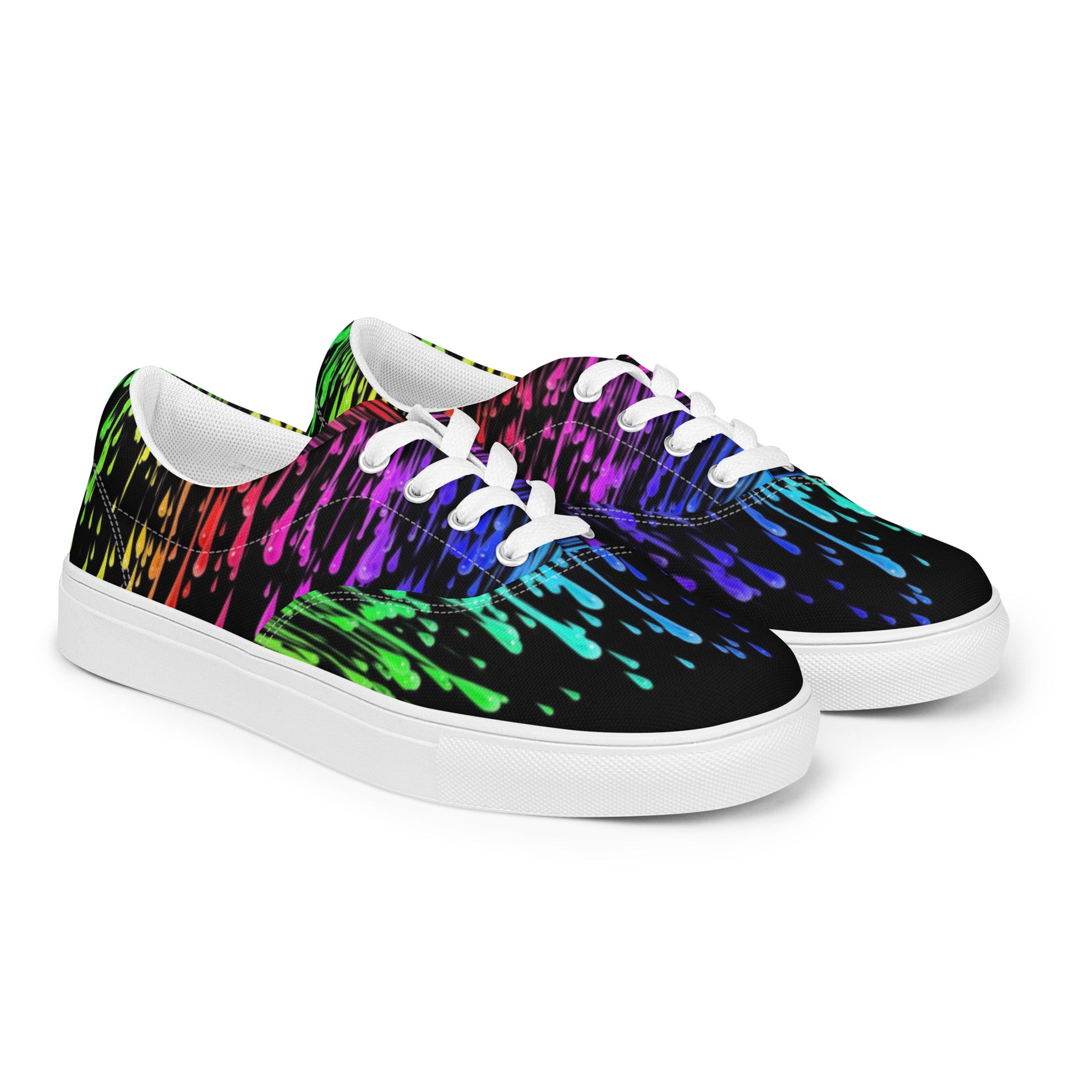 Rainbow Drip Men’s Lace-Up Canvas Shoes